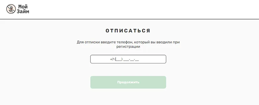 Для отказа от использования подписки следует воспользоваться функционалом на официальном сайте компании. Отключить услуги иным образом на данный момент невозможно. Отписаться от платных подписок Мой займ легко по ссылке, следуя инструкции: